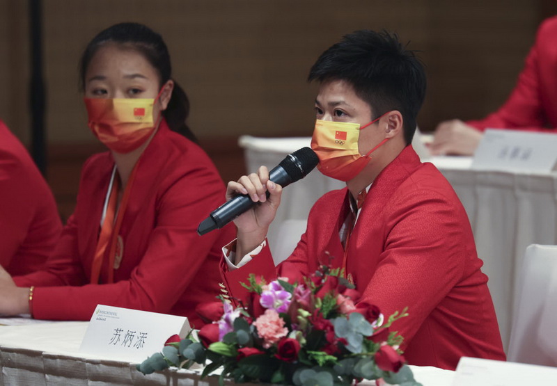 12月3日,东京奥运会乒乓球男单冠军马龙在媒体见面会上回答记者提问。新华社记者 贾浩成 摄