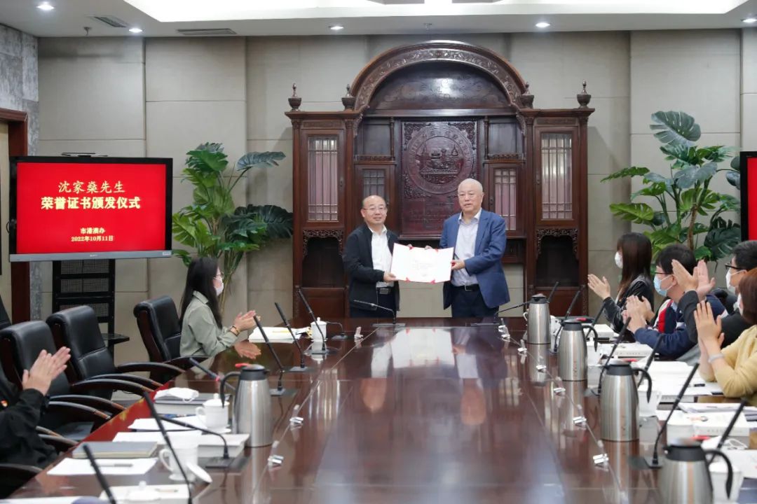 10月11日,市港澳办邀请津籍爱国爱港侨领代表人士沈家燊先生参加市外办(友协)学习《习近平谈治国理政》第四卷学习交流研讨会,并为其颁发荣誉证书。