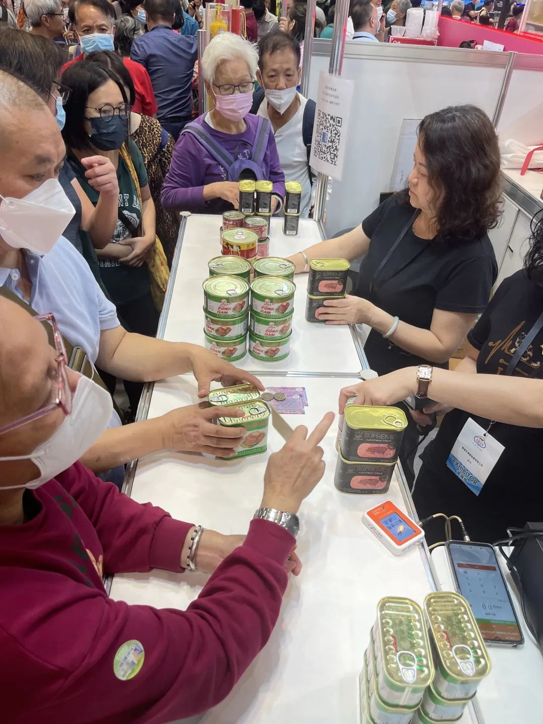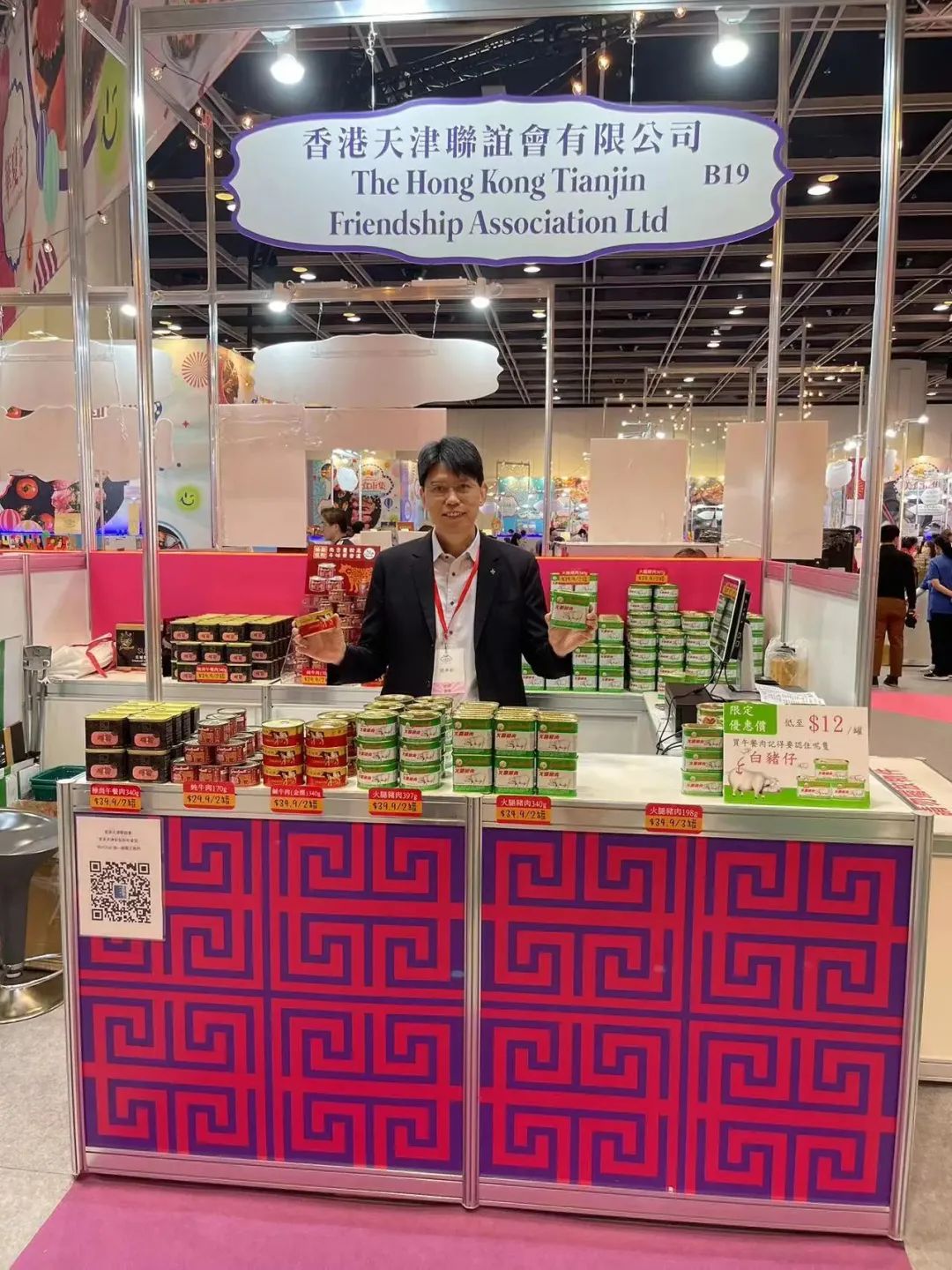 在天津海外联谊会、天津市港澳办等有关部门、企业的大力支持下,香港天津联谊会积极参与「开心香港」美食市集活动,第一时间联系有关部门筹划参展布展工作,为天津企业搭建「走出来」平台,帮助协调申报天津产品到港参展。美食市集上,香港天津联谊会展台10余种产品亮相美食市集,展出的长城牌火腿猪肉、极尚午餐肉、咸牛肉、纯牛肉等产品深受香港客户的青睐,消费者络绎不绝。