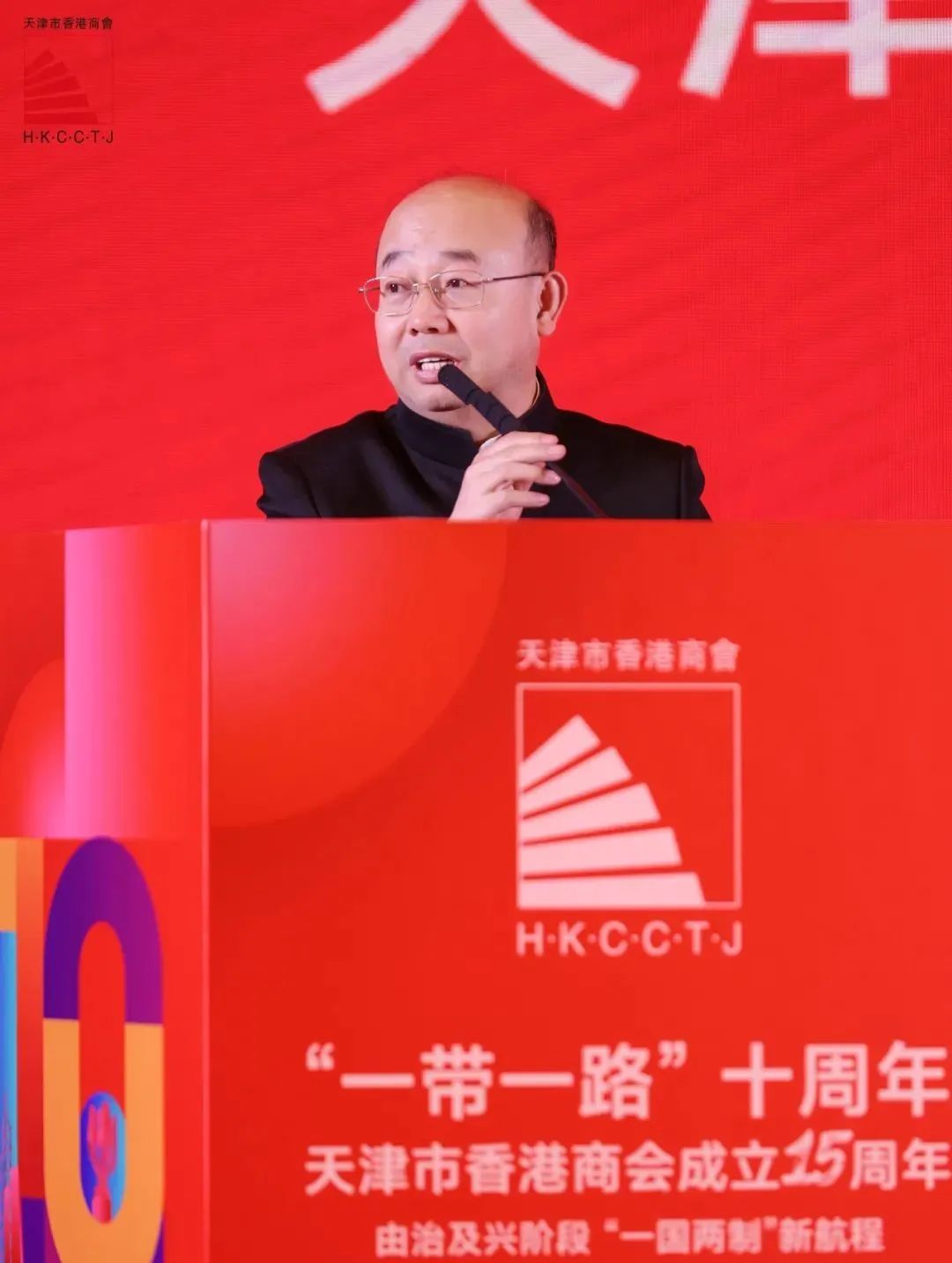 天津市港澳办栾建章主任在致辞中提出,天津市香港商会始终秉承爱国爱港优良传统,围绕促进津港经贸合作与文化交流宗旨,充分发挥商会平台引领作用,为深化津港各领域交流合作作出积极贡献。希望商会继续发挥平台作用,深化津港在经贸、金融、港口、科技、教育等众多领域交流合作,携手融入国家发展大局。