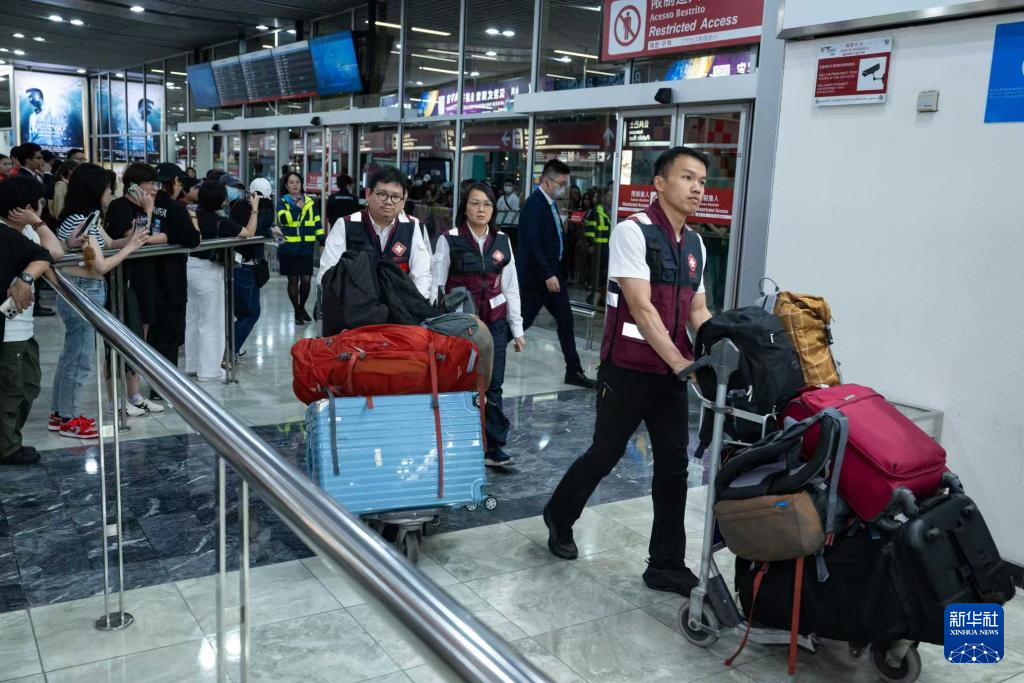 5月9日,中国国际应急医疗队(澳门)抵达澳门国际机场。新华社发(张金加 摄)