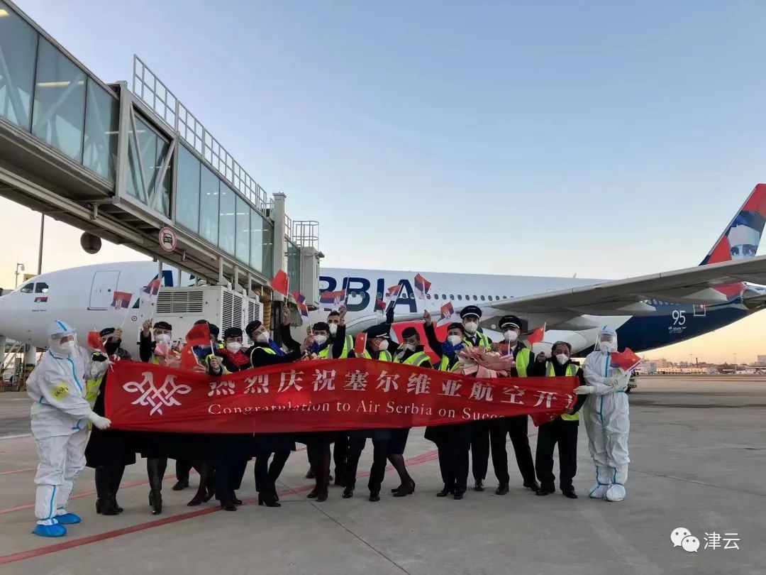 2022年12月10日6:49,满载着179名旅客的JU702航班在天津滨海机场顺利降落,标志着“贝尔格莱德-天津”航线正式开通。