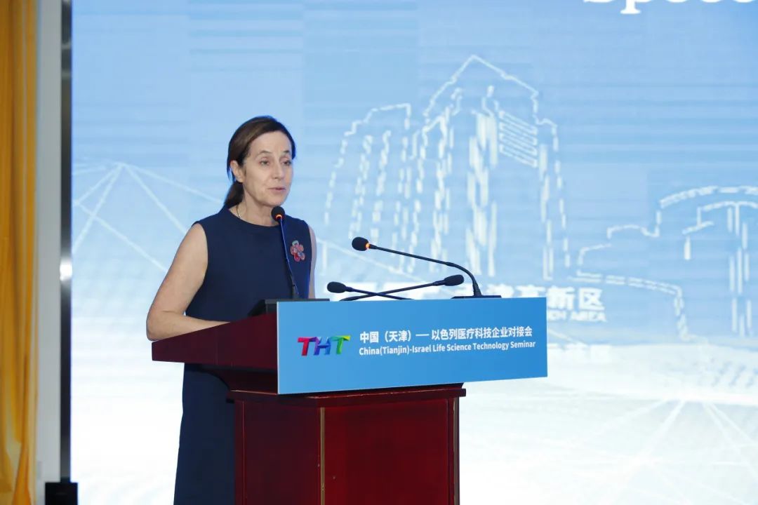 访津期间,潘绮瑞大使出席了由天津市外办、以色列驻华使馆主办,天津滨海高新区、以色列驻华使馆商务处承办的天津—以色列医疗科技企业对接会,会议现场中以双方共促成42组次“一对一”精准洽谈。潘绮瑞大使还出席了犹太人在近代天津图片展开幕式,参观了合源生物科技天津有限公司、天津迈达医学科技有限公司、天津医药集团等企业和犹太会堂旧址,并接受天津媒体采访。