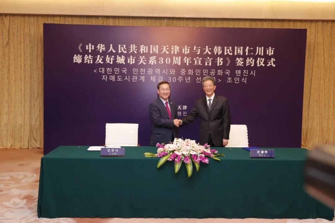 天津与韩国仁川市自1993年缔结友好城市关系以来,双方在高层互访、经贸、医疗、文化旅游等诸多领域开展了卓有成效的交流与合作。今年是两市结好30周年,年初,天津市副市长杨兵率团成功访问仁川市。6月底,仁川市市长刘正福率团访问我市,签署结好30周年宣言书。此外,仁川市立舞蹈团与我市歌舞剧院共同举办了两市结好30周年文艺演出。近日,天津市副市长朱鹏率团访问仁川市,出席2023仁中论坛开幕式并致辞。