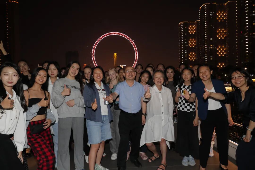 代表团甫一抵津,天津师范大学就举行了欢迎仪式。师大师生与代表团成员交流谈心,第一时间拉近距离,共同营造了热情友好、积极活泼的氛围。师大还精心准备了熊猫布偶赠给代表团成员,获得一阵阵欢呼和好评。晚间,代表团与师大学生共同乘船考察海河沿线改造工程,体验杨柳青年画、毛笔书法等我市经典非遗文化。在海河两岸的美丽夜景中,在清风徐来的游船甲板上,来自相距万里的中美两国青少年手拿着年画、福字,用中文和英语倾心交谈,真正体现了“志合者,不以山海为远”。
