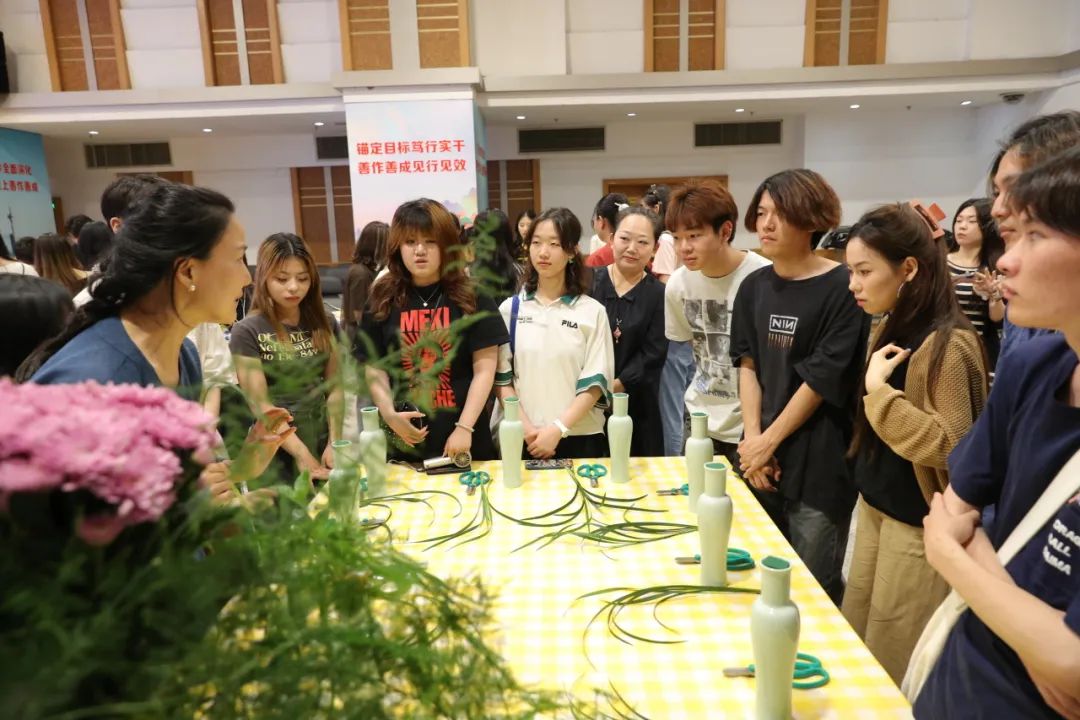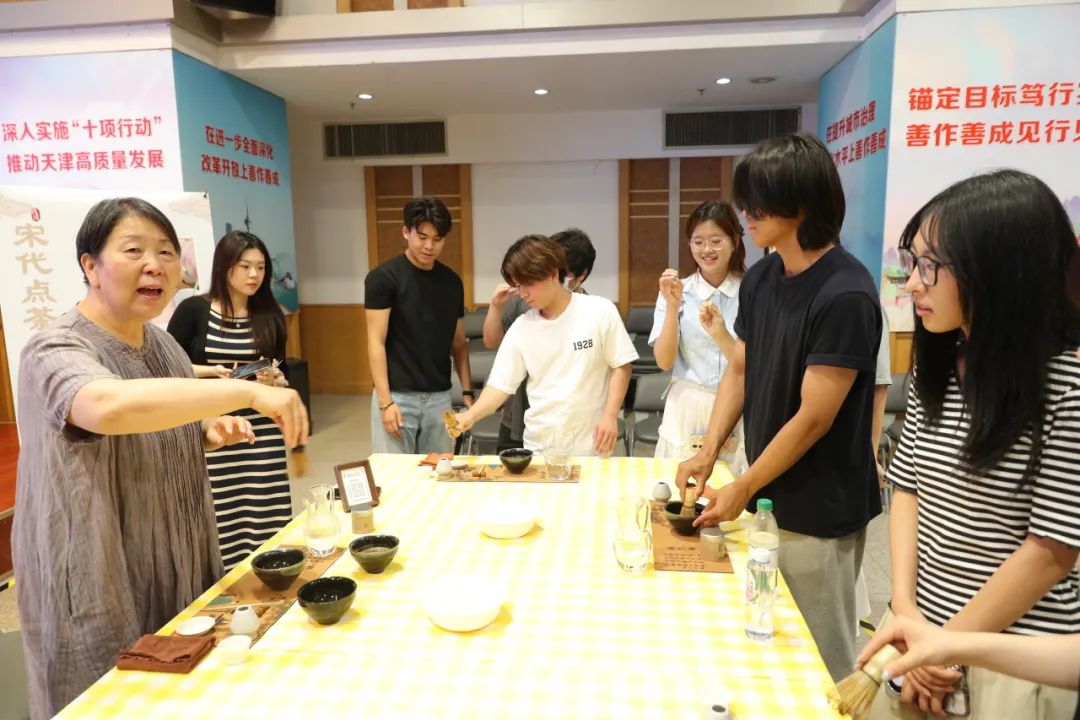 随后,中日学生分成6组进行交流,通过自我介绍、抽取话题卡、写下祝福等环节,迅速拉近了彼此间的距离。双方学生还一对一结对,共同乘车赴天津青年宫,了解“青年夜校”品牌活动,体验了天津民间传统插花、茶果子制作、国画书法、宋代点茶与茶百戏四项文化体验项目。中日学生纷纷表示,此次活动不仅是一次文化的相遇,更是一场心灵的对话,通过面对面交流,不但增进了相互了解,还收获了友谊。