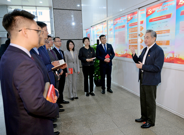 报告会后,王毅与基层党员干部代表交流互动,要求外交外事战线全体同志切实践行习近平总书记对外交队伍提出的重要要求,积极投身强国建设、民族复兴伟业,为构建人类命运共同体作出新的更大贡献。