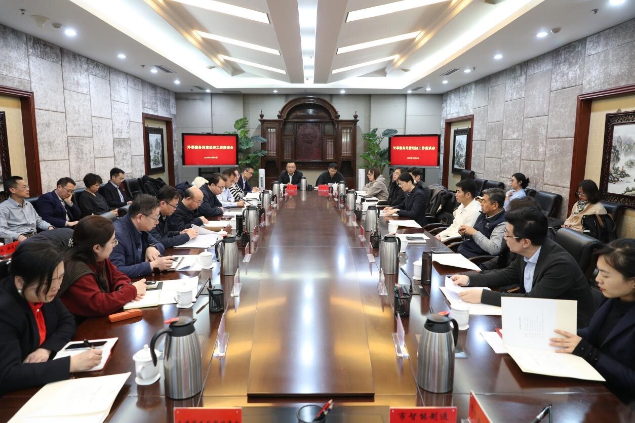 为深入学习贯彻党的二十届四中全会精神和市委十二届七次全会精神,全面推动天津城市国际化发展,聚焦经济外事,精准服务企业,2025年12月23日下午,市外办举办外事服务民营经济工作座谈会。市外办党组书记、主任栾建章出席并讲话,办党组成员、副主任郭强主持会议,我市民营经济企业代表、商协会及有关部门负责同志20余人参会,结合各自业务领域和工作职责,围绕我市“十五五”期间城市国际化发展、对外交流合作方面需求等方面提出意见建议。