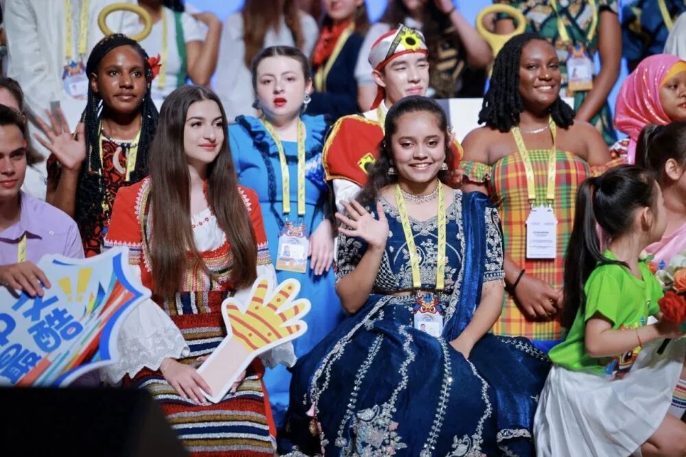 开幕式上,30名天津青少年以清脆嘹亮的歌声真情演唱了今年上合峰会期间唱响的《我在天津等你》。优美的旋律勾勒出天津的四季景致与地域文化符号,满腔热忱欢迎世界各地青少年的到来。传统与现代科技交融的表演《字脉千年》,通过人机组合联动,将传统舞蹈与律动欢快的查尔斯顿舞巧妙结合,呈现出传统与现代的美妙融合,象征着中华文化在数智时代跨越疆界,促进语言互通、理解互信、文明互鉴的美好愿景。