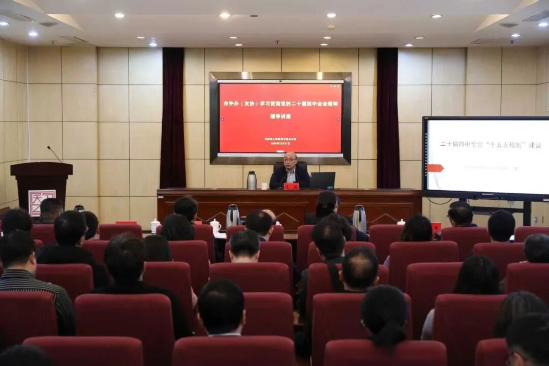 12月11日,市外办举办学习贯彻党的二十届四中全会精神辅导讲座,邀请中央党校李鹏教授辅导授课,深入学习贯彻党的二十届四中全会精神,认真贯彻落实市委十二届七次全会精神,教育引导外事干部进一步全面准确把握党的二十届四中全会精神,进一步推动学习贯彻党的二十届四中全会精神入脑入心、见行见效。