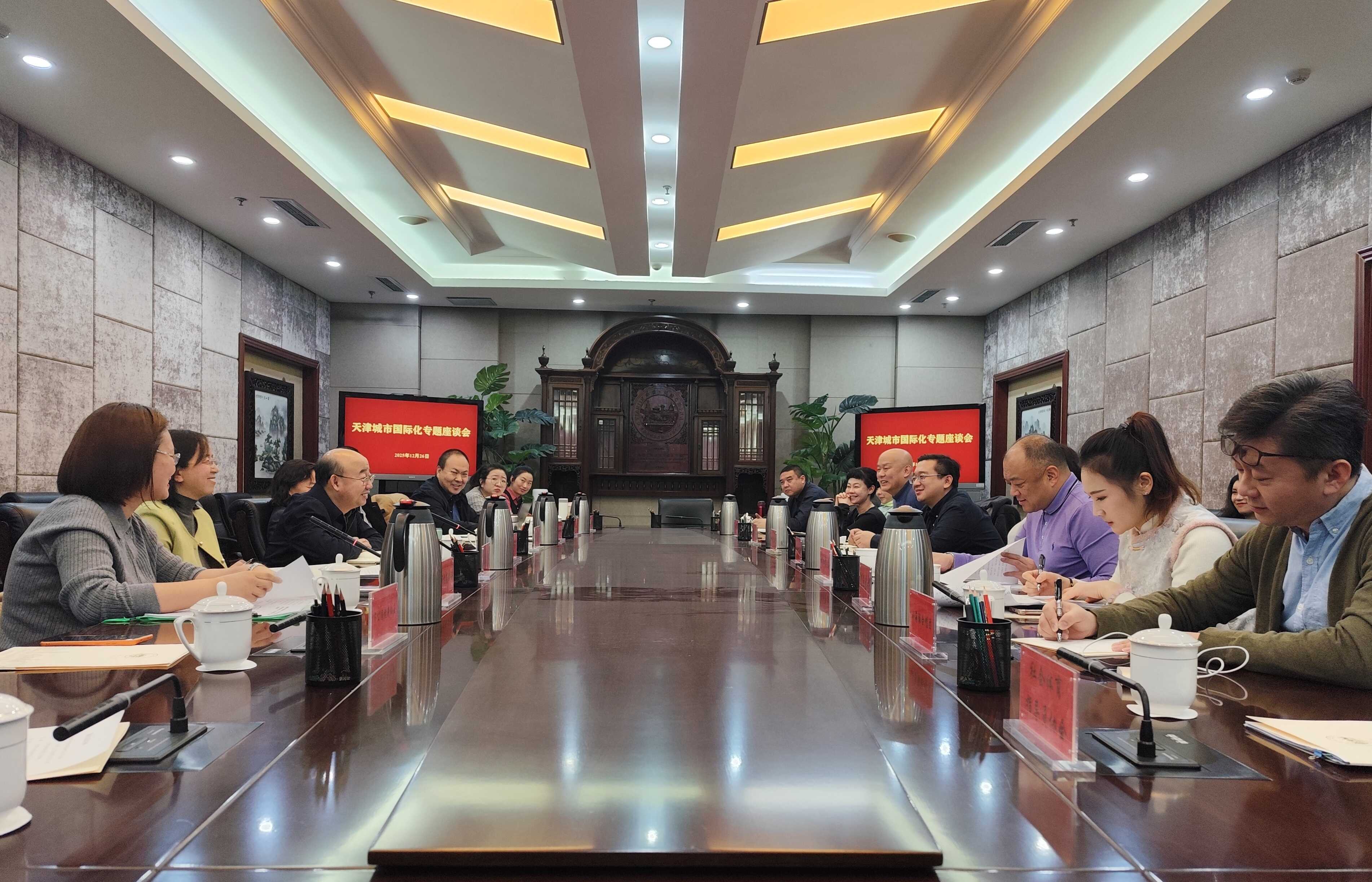 为深入学习贯彻党的二十届四中全会精神和市委十二届七次全会精神,推动我市民间组织“走出去”开展国际交流合作,助力天津城市国际化发展,日前,天津市民间组织国际交流促进会(以下简称“津促会”)召开天津城市国际化专题座谈会。市外办、市对外友协负责同志出席会议,津促会理事单位及成员单位代表20余人参会,结合各自业务职责和资源优势分享开展国际交流合作经验做法,并就天津城市国际化建设建言献策。