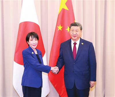 当地时间10月31日下午,国家主席习近平在韩国庆州出席亚太经合组织第三十二次领导人非正式会议期间应约会见日本首相高市早苗。