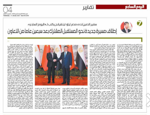 2026年1月21日,驻埃及大使兼驻阿盟全权代表廖力强在埃及《七日报》发表署名文章《携手同行七十载,命运与共启新程》,全文如下: