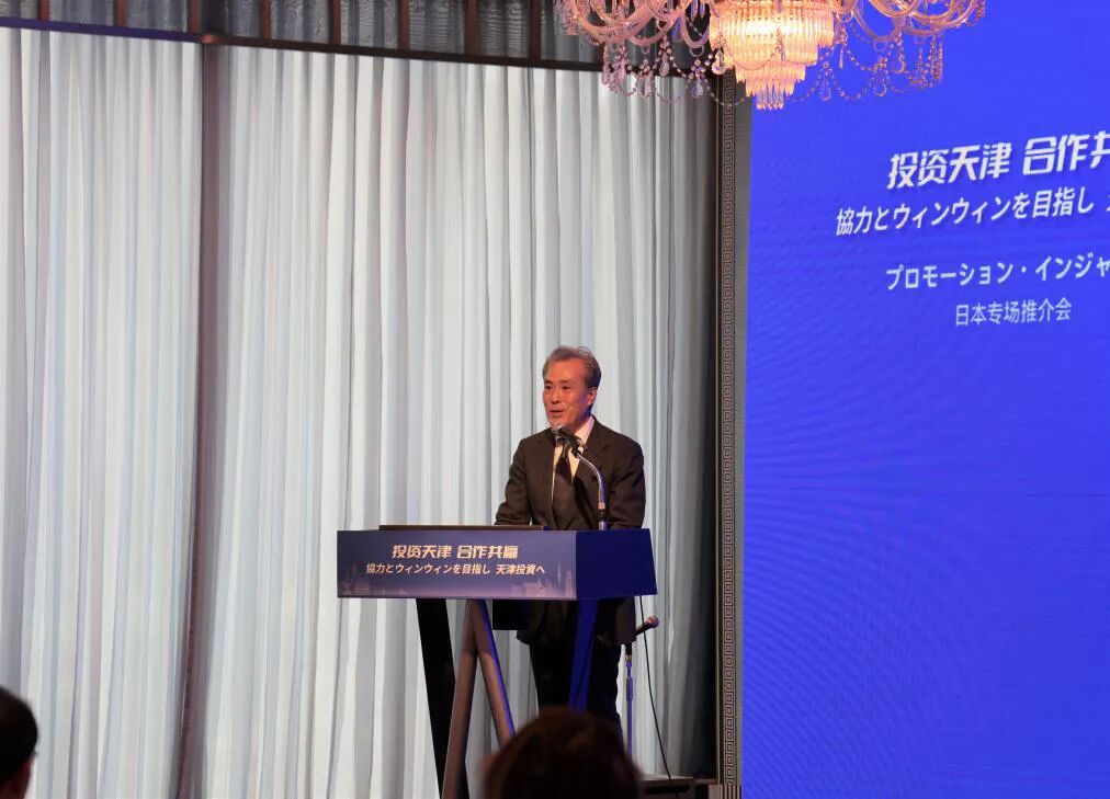 推介会上,天津市商务局和滨海新区现场作招商推介,津村株式会社、SMC株式会社等企业代表分别发言。