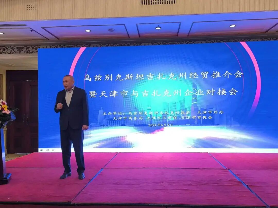 6月5日下午,我市与吉扎克州共同举办吉扎克州经贸推介会暨天津市与吉扎克州企业对接会,市工商联主席、市总商会会长娄杰出席活动并致辞,市对外友好协会副会长黄春艳、市贸促会副会长郭造林出席活动,共有200余家企业代表参加活动。会上,萨里耶夫州长介绍了该州经济社会发展情况及招商引资有关政策,并就现场企业感兴趣的问题进行解答。