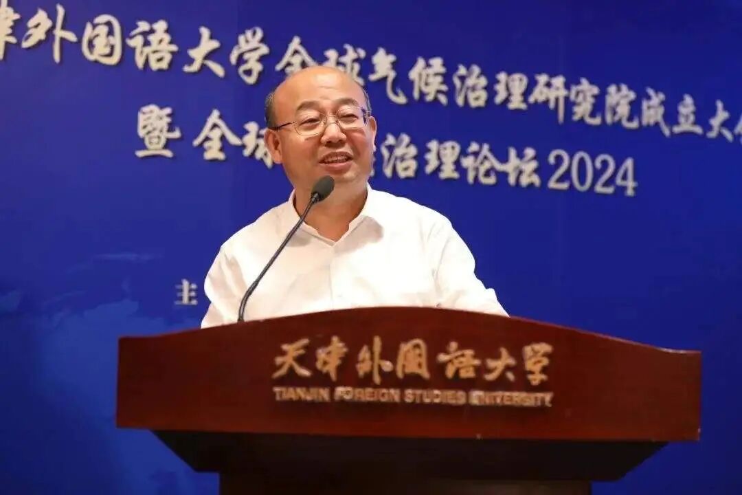6月22日,天津外国语大学全球气候治理研究院成立大会暨全球气候治理论坛2024在钟楼报告厅成功举办。天津市人民政府外事办公室党组书记、主任栾建章,天津市生态环境局党组书记张弢,中国外文局当代中国与世界研究院副院长孙敬鑫,天津外国语大学党委书记周红蕾,党委副书记、校长李迎迎出席活动。来自中国社会科学院、吉林大学、北京语言大学、天津师范大学的专家学者,以及天津外国语大学相关部门、学院的师生代表共计160余人参加活动。大会由李迎迎主持。