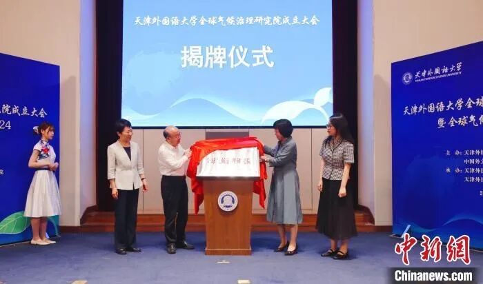 会上,与会领导共同为天津外国语大学全球气候治理研究院揭牌。