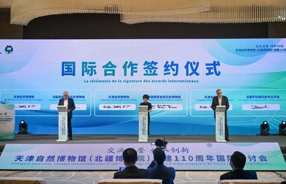 研讨会上,天津自然博物馆与法国国家自然历史博物馆、法国南特自然历史博物馆、法国罗别镇历史考古学会分别签署馆际合作协议,在人员互访、科学研究、展览展示特别是北疆博物院珍藏资料整理等领域开展深层次合作;与河北大学、天津外国语大学分别签署馆校共建合作协议,以期在人才培养、合作研究、法语翻译与整理等方面结出更多成果;携手上海自然博物馆、南通博物苑等15家百年历史的自然科学博物馆(收藏地),创建“中国百年自然科学博物馆(收藏地)联盟”并发布倡议书。