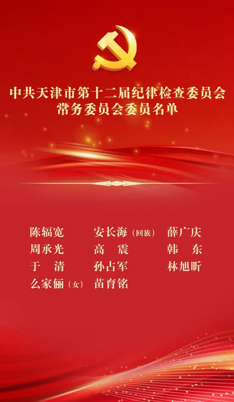 中共天津市第十二届纪律检查委员会常务委员会委员名单