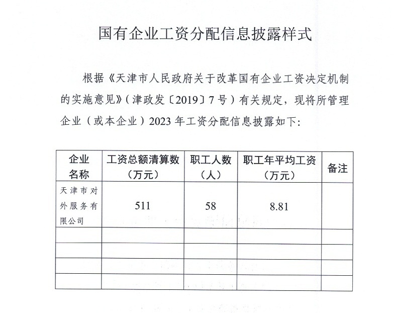 市外办所属国有企业2023年度企业负责人薪酬分配及工资总额预算执行情况