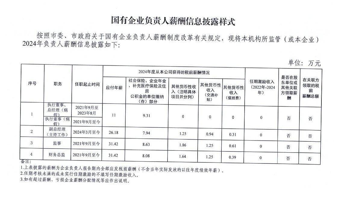 市外办所属国有企业2024年度企业负责人薪酬分配及工资总额预算执行情况